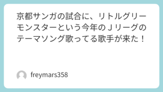 tiktok 京都サンガの試合に、リトルグリーモンスターという今年のJリーグのテーマソング歌ってる歌手が来た! こちらは、京都サンガの試合に、リトルグリーモンスターという今年のJリーグのテーマソング歌ってる歌手が来てたときの映像になります😊 2025.09.02 tiktok