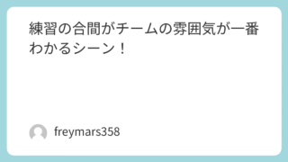 練習の合間がチームの雰囲気が一番わかるシーン!
